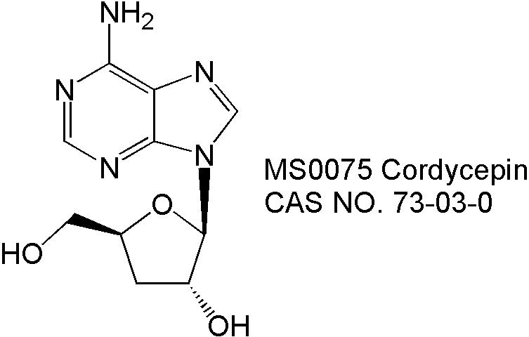 搜索关键词: Cordycepin 虫草素;3'-Deoxyadenosine 3ˊ-脱氧腺苷;核苷类抗生素;Antitcancer agent抗肿瘤试剂; Antifungal agent 抗真菌试剂;CAS:73-03-0