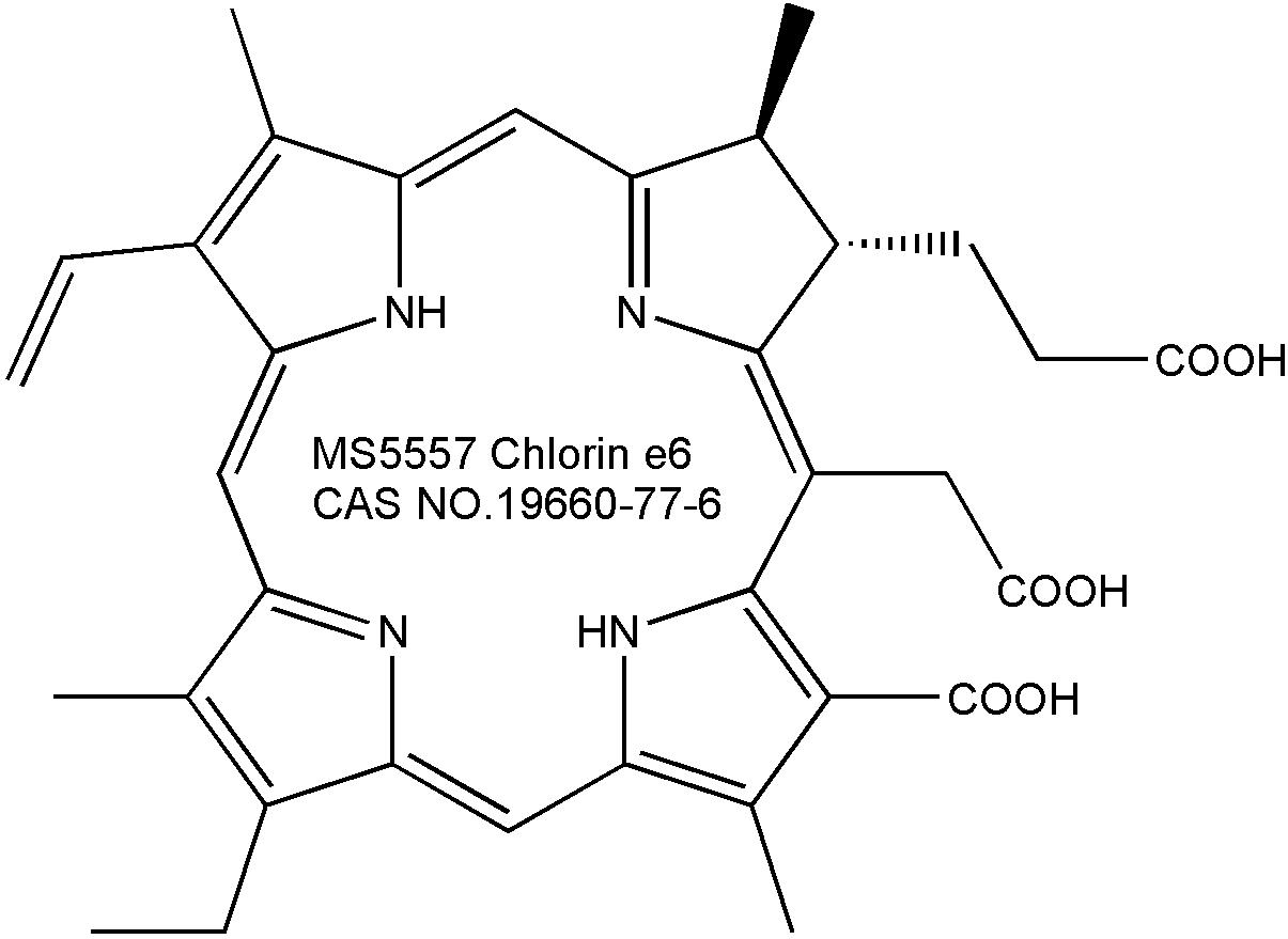 产品简介: Chlorin e6 (Ce6) 二氢卟吩e6 关联词: Chlorin e6 (Ce6) 二氢卟吩e6;Photosensitizer 光敏剂;Photodynamic therapy 光动力治疗(PDT);SOSG 单线态氧探针;CAS NO 19660-77-6; 产品信息