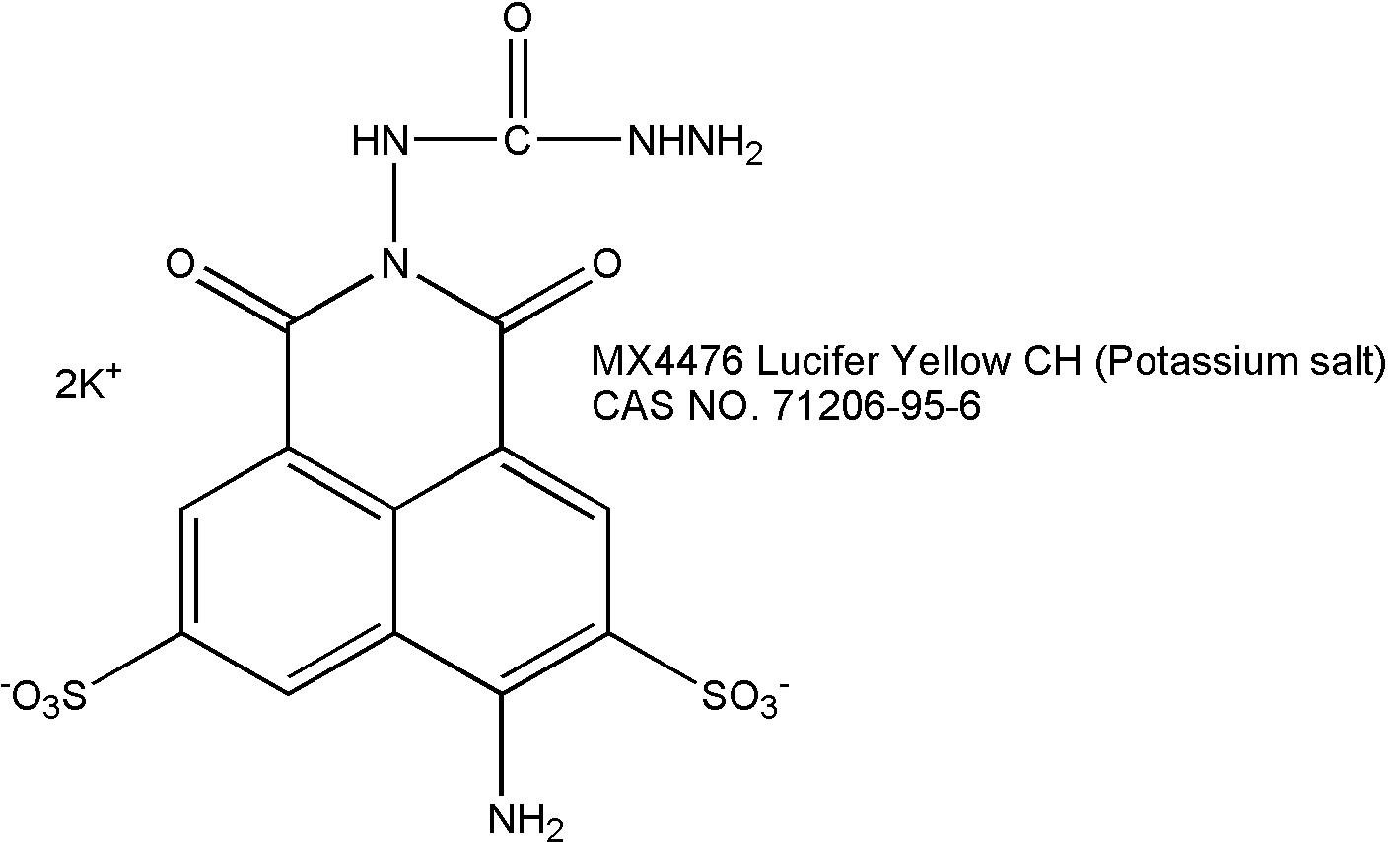 锂盐形式的萤光黄CH(Lucifer Yellow CHpotassium salt,Cat#:MX4475)通常用于微注射,因其比钾盐或铵盐形式的萤光黄CH表现出更高的溶解性。钾盐或铵盐形式的萤光黄CH倾向于用在锂离子可能干扰某些生物功能的场景。
